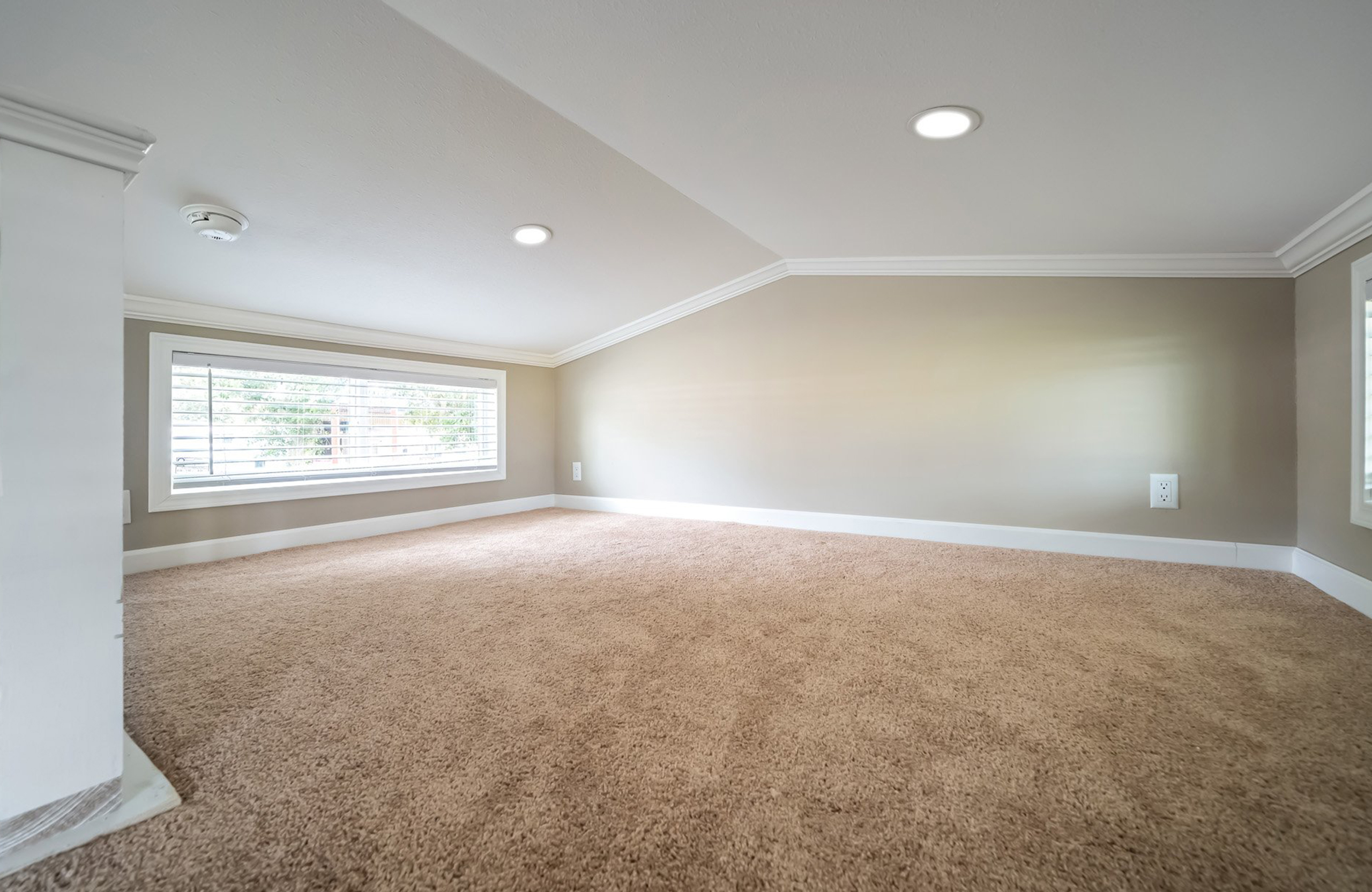Vaulted ceilings and stacked windows fill the living area with natural light, creating an open, welcoming environment. The kitchen’s stainless steel appliances and shaker cabinetry provide durability for everyday living or rental use, while the loft adds valuable sleeping or storage space that adapts to changing needs.